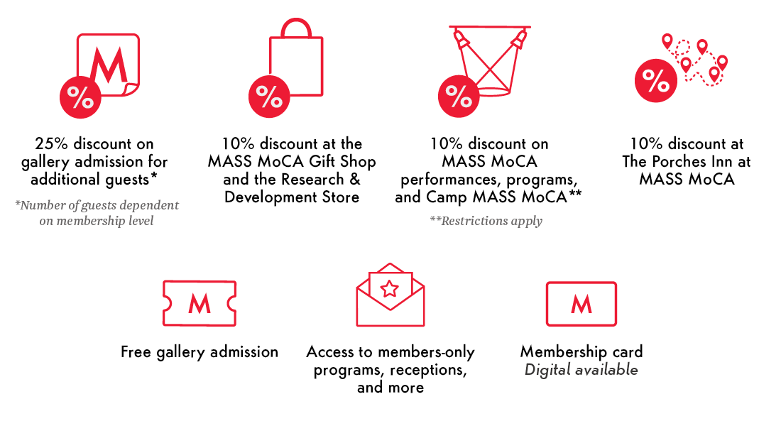 MASS MoCA memberships are for personal use, non-refundable, and non-transferable. Memberships may be revoked at any time for misuse or violation of museum policies. By joining, you agree to follow all museum rules to help ensure a safe and welcoming experience for all.