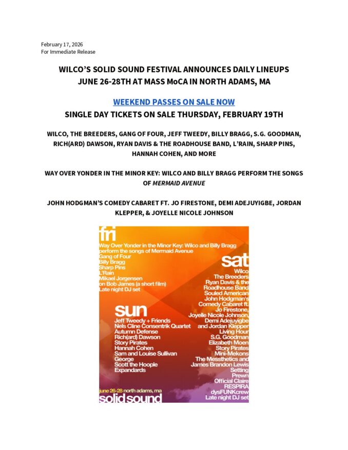 Solid Sound 2026 – Daily Lineup Announcement – Press Release